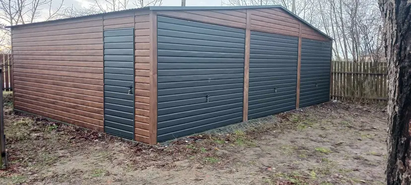 Garaż 6×5 m w wykończeniu drewnopodobnym to praktyczne i estetyczne rozwiązanie do przechowywania samochodu, motocykla lub sprzętu ogrodowego.